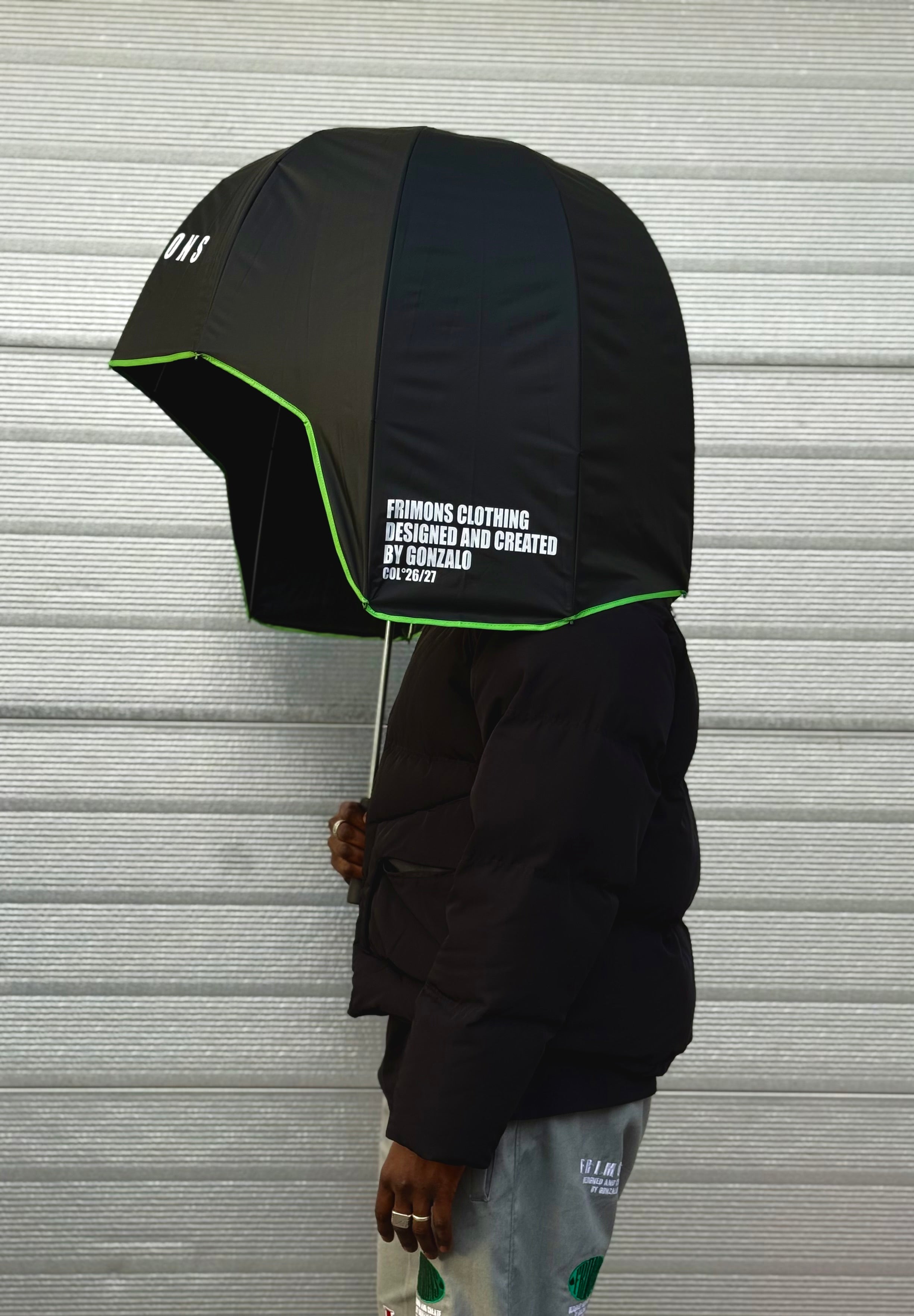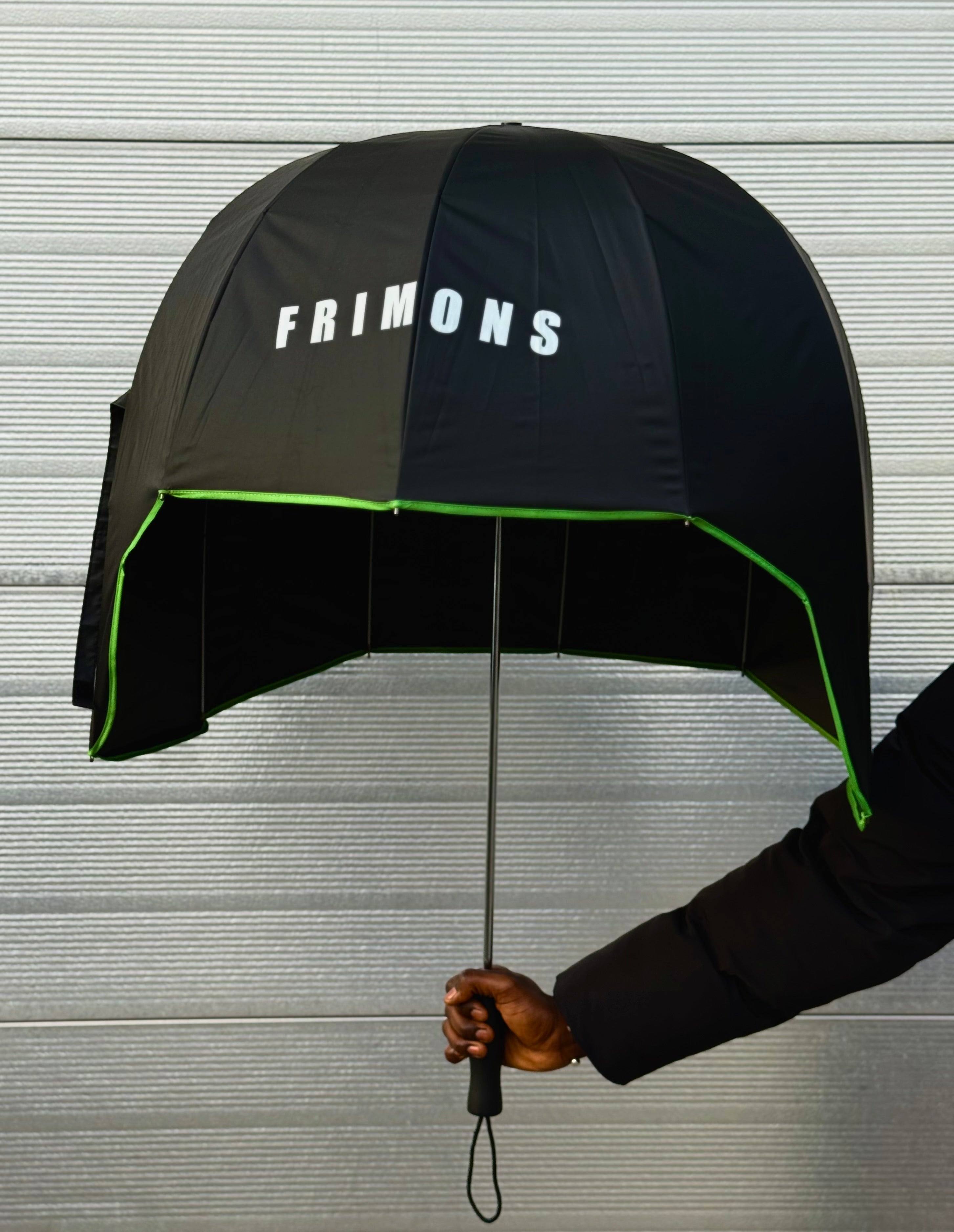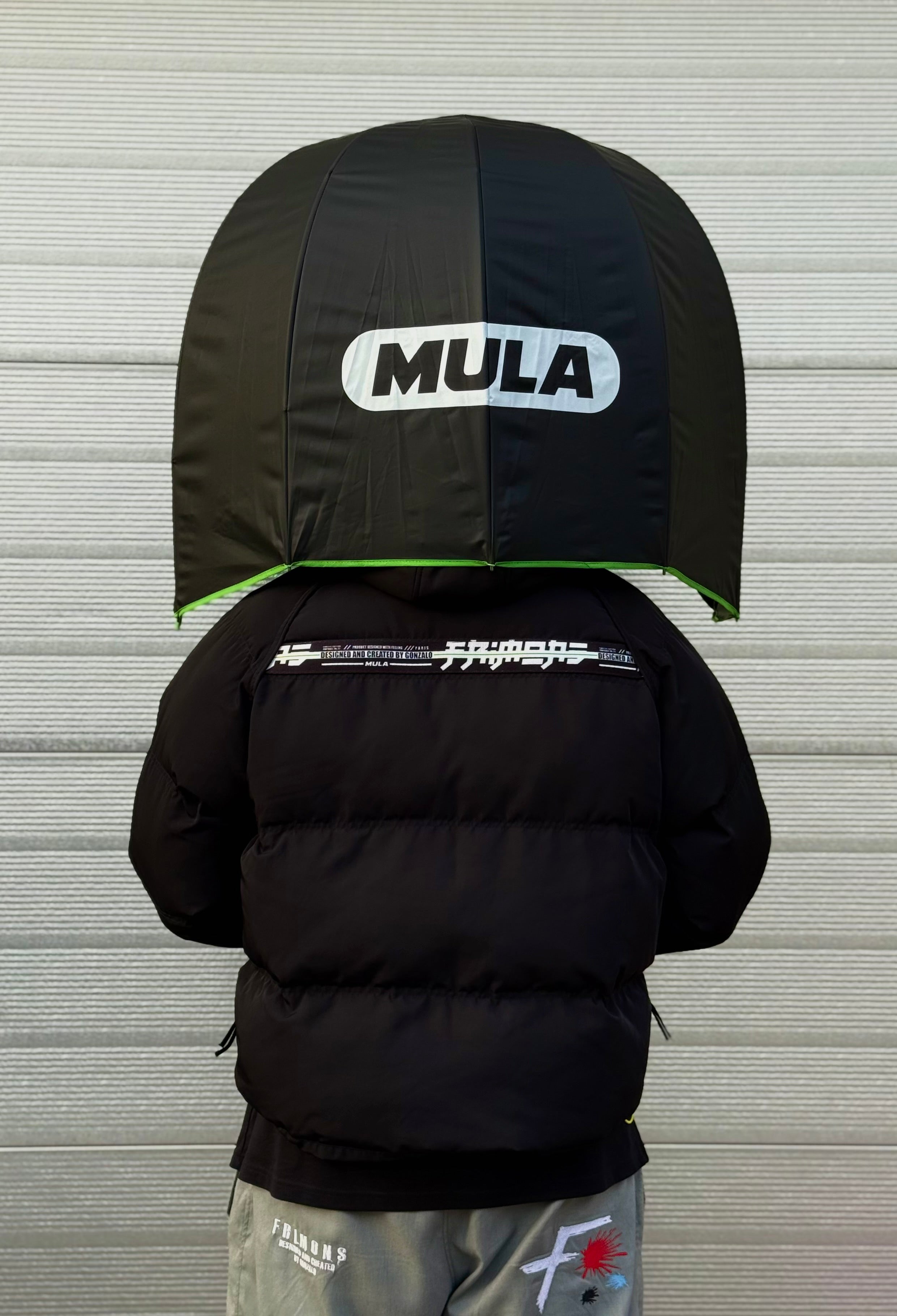 Le parapluie MULA se distingue par sa forme casque enveloppante, conçue pour offrir une protection maximale contre la pluie. Sa structure couvrante protège efficacement la tête, le haut du corps et le visage, même par mauvais temps.